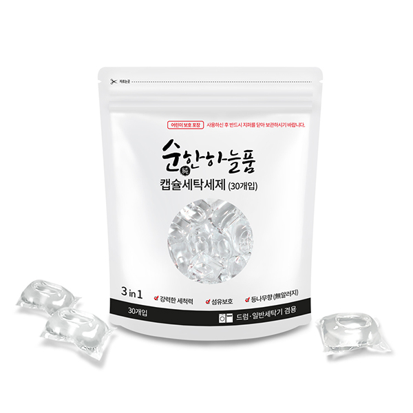 순한하늘품 캡슐세제는 드럼세탁기와 일반 통돌이세탁기 모두에서 사용이 가능하며, 총 30개의 캡슐이 들어있다. --(중략)--