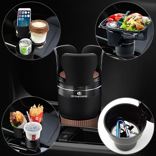 유비윈에서는 컵홀더에 꽂기만 하면 최대 2개의 음료수와 차량용핸드폰거치대 기능까지 동시에이용할 수 있는 5단 멀티컵홀더 ‘유비매직홀더’를 출시하였다.